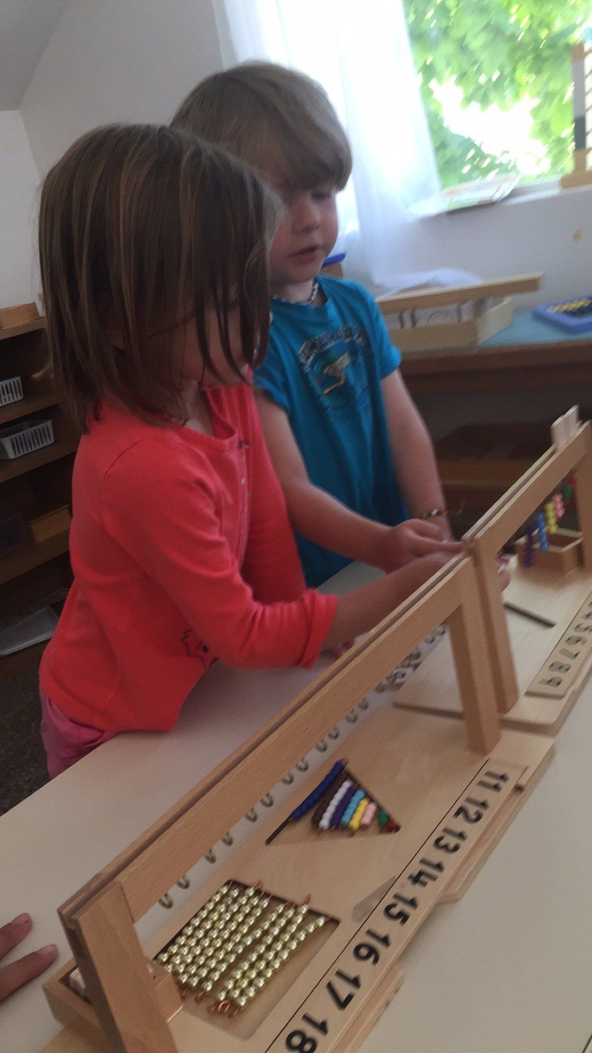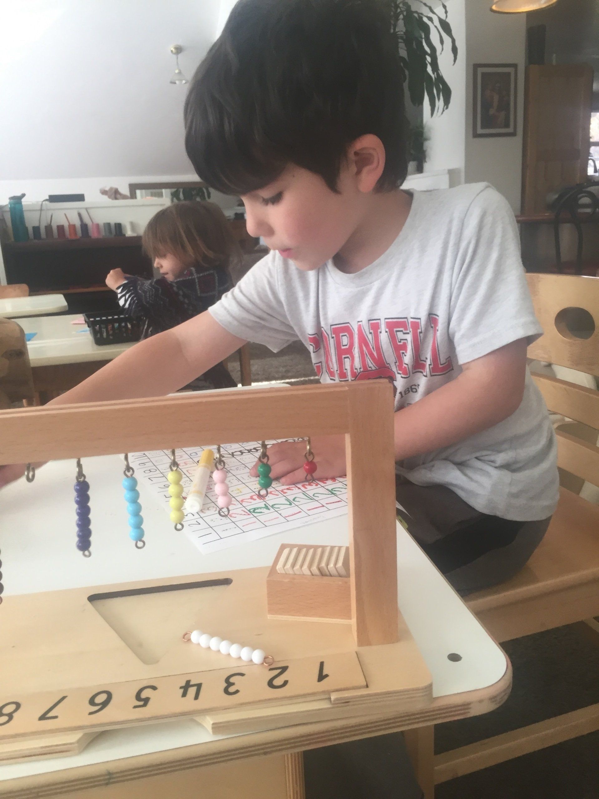 The concrete Montessori materials are meant to help children, and often adults, make sense of math, and walk the child from the concrete to the abstract. It is important to let the child lead, making invitations to interact and play together, and creating a positive environment,